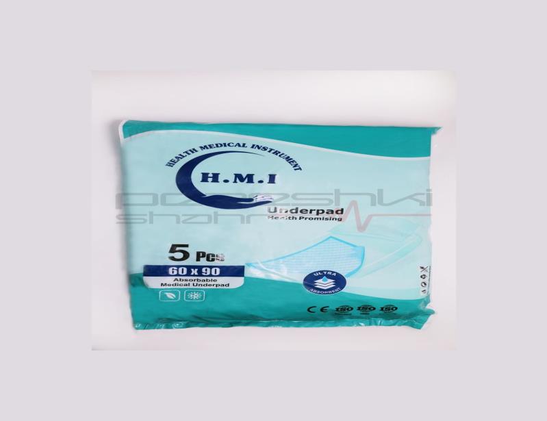 زیرانداز بهداشتی بیمار HMI پنج عددی برای استفاده در اتاق عمل و بستری، بخش های مراقبتی کلینیک ها، مهدکودک ها، معاینه بیماران روی تخت معاینه، مراکز زیبایی و برای مصارف خانگی با هدف خشک و تمیز نگه داشتن فرش، تشک خواب، ملحفه، صندلی، موکت و ... این پد قابلیت جذب بالایی دارد و آلودگی را به خود جذب می کند، دارای هفت گرم پودر جاذب با قدرت جذب بالا و آنتی باکتریال، ضد بو، ضدحساسیت و یکبار مصرف است. لطفا بعد از مدت زمانی معین با زیراندازه تازه و نو تعویض شود.
