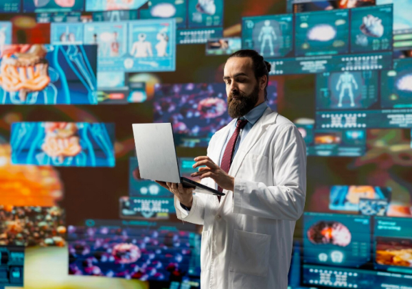 - تشخیص دقیقتر و سریعتر: IoMT امکان استفاده از ابزارهای تشخیصی پیشرفتهتر را فراهم میکند. هوش مصنوعی (AI) و یادگیری ماشین (ML) میتوانند الگوهای پنهان در تصاویر پزشکی (مانند رادیوگرافی، MRI، CT اسکن) را شناسایی کرده و به پزشکان در تشخیص بیماریها در مراحل اولیه، حتی قبل از بروز علائم آشکار، کمک کنند. همچنین، حسگرهای پوشیدنی میتوانند معیارهای فیزیولوژیکی را به طور مداوم ثبت کرده و ناهنجاریها را به سرعت گزارش دهند.